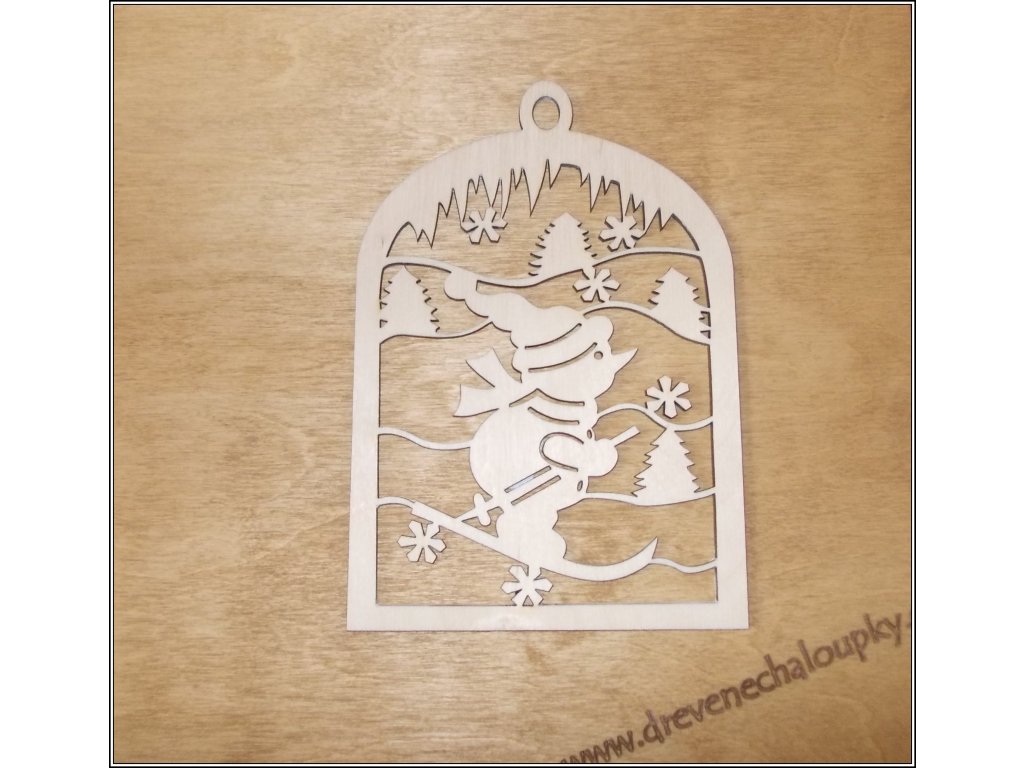 Sněhulák na zavěšení do okna nebo na dveře. Možnost dalšího dekorování. S otvorem pro zavěšení.. Rozměr: 13 x 18,5 cm. Vyrobeno z překližky, laserem.